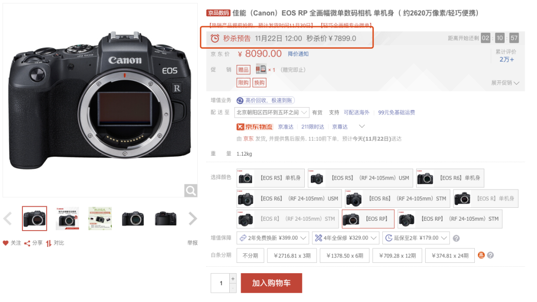 今天中午12:00开始,京东自营EOS RP秒杀开始,7899价格很不错了。