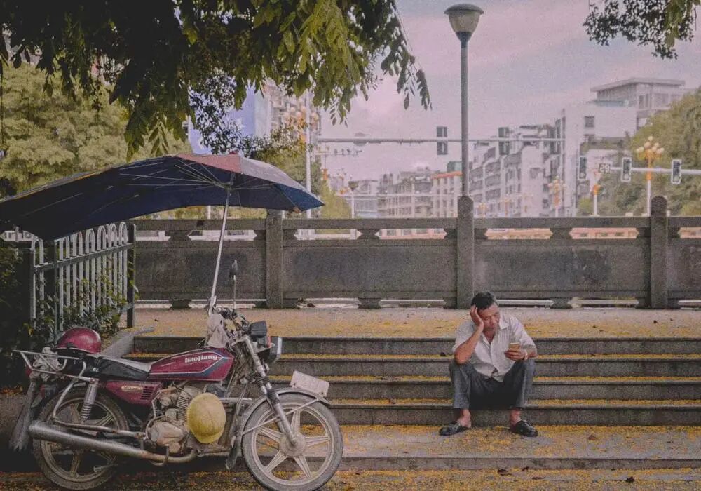 原图超10m,所以压缩了一下可能不太清晰,这是一位摩的大哥,看到这一幕就想到生活的不易,便记录了下来,位置是老家普宁市的桥边阶梯
