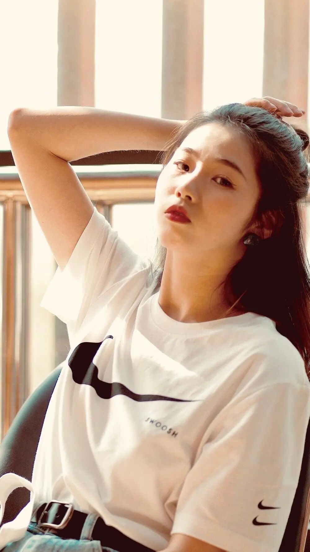 先说取景,小取景范围,给人一个半身像,画面填充比较满,我觉得整体来说还是可以的。但是这样的取景范围基本就是完全看姑娘的表现了。个人认为姑娘的神态动作什么的,有点做作了,尤其是脑袋上面无处安放的小手……