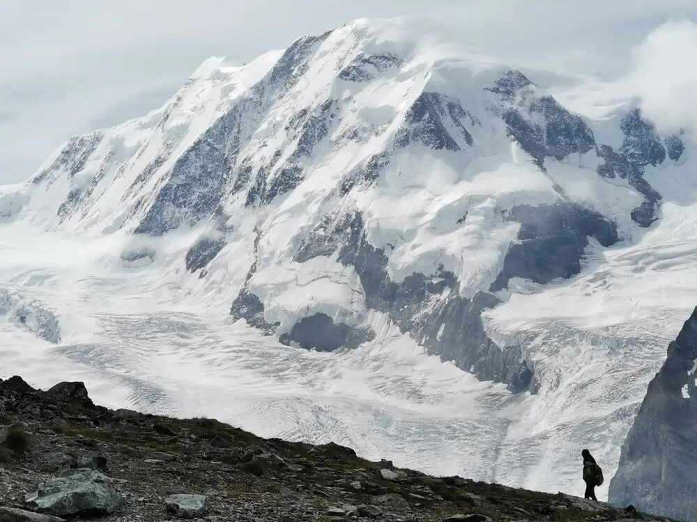 但是同时,要注意人物更小,需要突出。现在人物基本是一个剪影,背景是白色雪山的白雪。所以小一点,也会突出。扩大点取景范围也没问题。