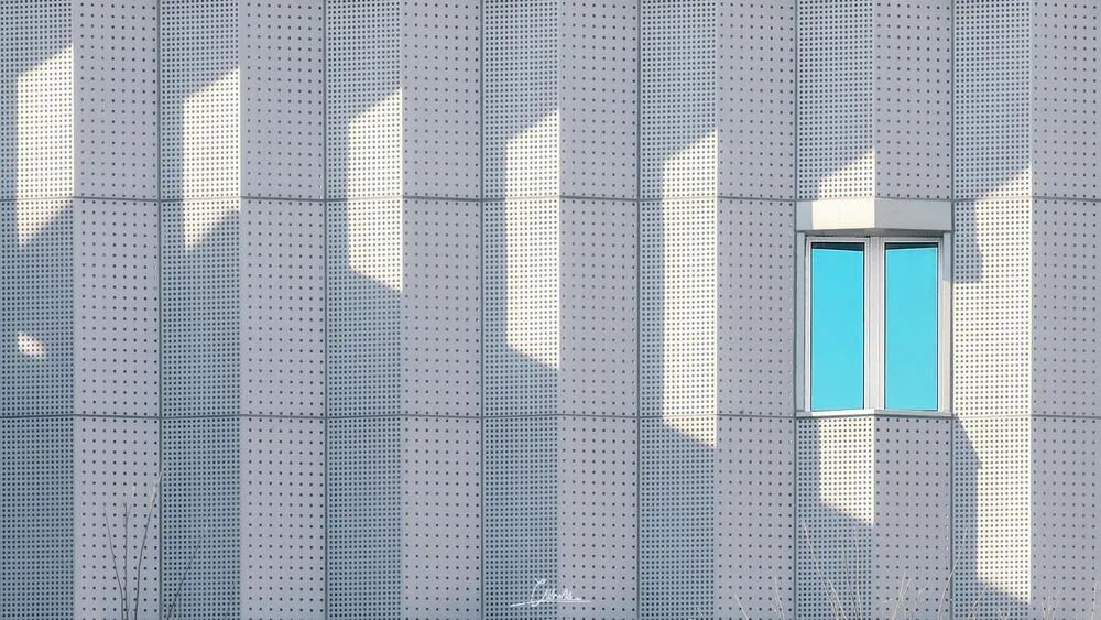 取景方面,干净清爽,蓝色的小窗户真的很好看。这个光的角度好。画面除了建筑的结构以外光影效果也是非常的好。