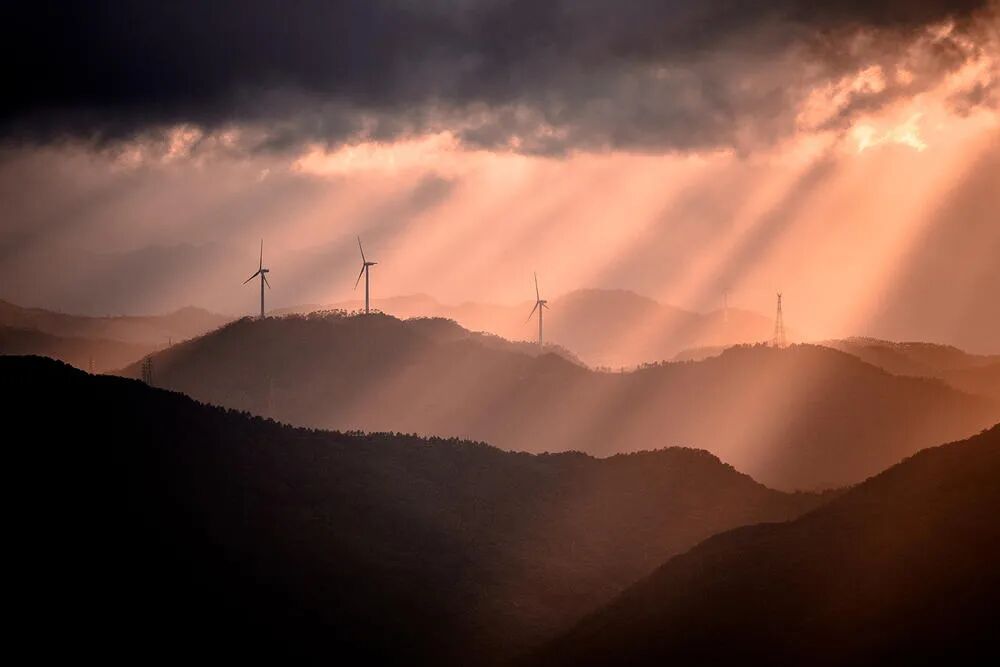 点评:光线非常好看,同时这个山脊找的也好,一排风车不仅不违和,而且很点睛。