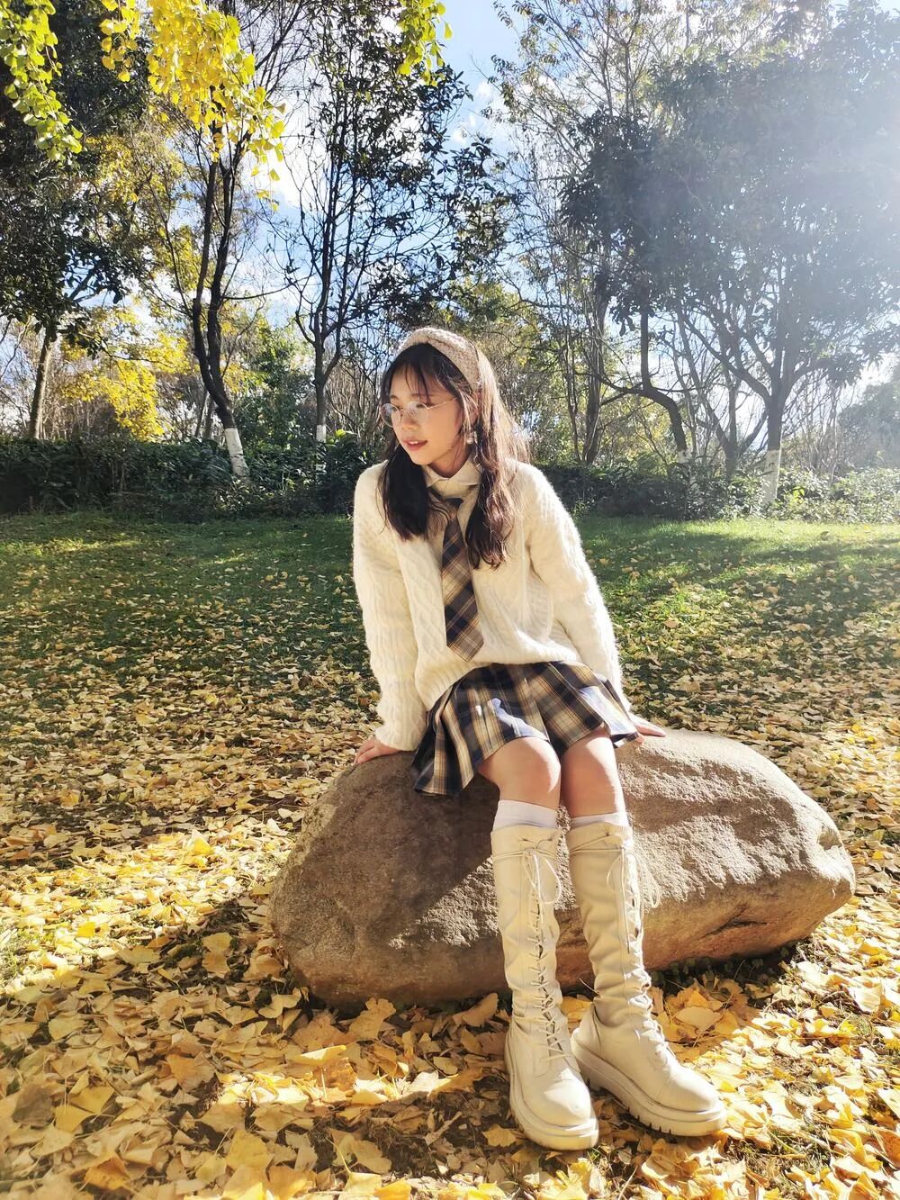 首先姑娘的姿态不行。她应该是没有经验的,你也没有引导。拍摄角度虽然会显得腿长,但是你考虑过这个场景,你的主题,需要腿长吗?你需要的是姑娘在秋色中的那种美。腿长,是不是太肤浅了?