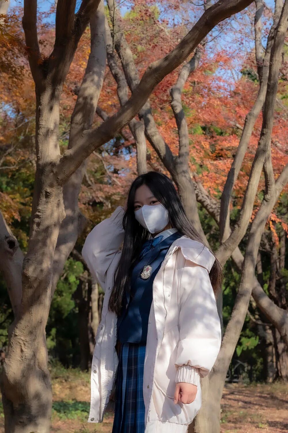 点评:姑娘是个好姑娘,但是这是要拍秋天人像吧?咱们能不能把外面这个大衣脱了?和里面的衣服不搭配啊!