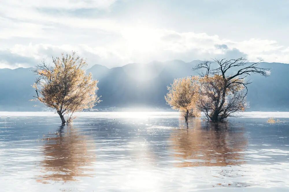 设备:索尼a6100,套头16-50,自动挡拍摄拍摄时间地点:下午5:00,大理洱海前期:当时拍摄的时候想把太阳反射的光作为中界线,左右两棵形成相对的呼应,海平面端平背景:大三学生,自学摄影,2020年一年里经历了起起伏伏,有一段时间特别迷茫无助,是摄影陪我慢慢走过来,没有堕落和放弃。回首过去,感激没有轻言放弃的自己,依然热爱自己,热爱生活,感谢心中的光亮。主题:心里那道透亮的光,请指引我前行。后期:营造“仙、透亮、清澈”的基调,提升图片曝光和阴影,统一整体色调,降低清晰度营造朦胧感,把树叶从绿色变为黄色来增加反差和冲击,避免死气,污点去除工具清理海面,将远处的白色房屋处理掉,避免背景杂乱,添加径向滤镜还原天空细节。不足之处:1.未拿三脚架,也没有减光镜,忘记利用慢门把海面变顺滑一些,海面有些杂乱。2.只用了LR处理,有些细节没有处理到位,希望后期学了PS,对照片处理可以再进一步。其余色调,构图等等还希望校长可以给予指导,因为自己也是自学的摄影,时间也不长,很多地方自己没办法看出来,谢谢校长。摄影对我来说是生活的力量和态度,未来一年对我来说无比关键,祝我梦想成真,勇往直前。
