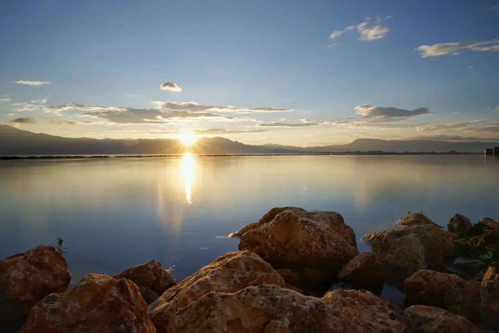在大理洱海拍摄日出,构图使用了三分构图,太阳在左上角,在岸边找了几块石头作为前景。拍摄的时间已经是早上7点半左右,太阳挂在山上光比较大,使用了ND1000,拍摄风景考虑使用小光圈f14,光圈优先,曝光10秒。后期主要是减高光,调亮暗处,调色温烘托气氛。其实最佳的拍摄时间不长,很快太阳就挂天上了,第一次使用ND镜,经验不足,希望老师指导点评!