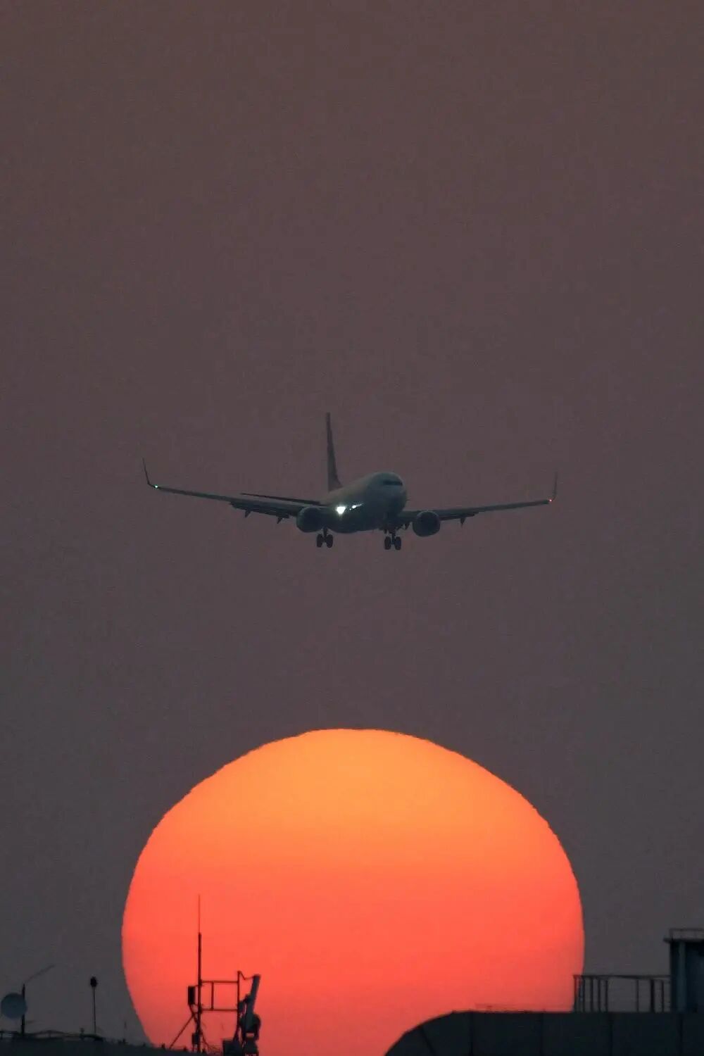 追逐夕阳。春夏秋冬夕阳西下的位置有变换,而飞机下降的航线却不变。我一直在等待,等待它们重合相交汇。很开心我等到了。飞机飞行速度很快,所以一定要保证快门速度,我先调整好参数等待航班。夕阳落下的速度很快,第一架飞机飞来的时候,我拍到了飞机和夕阳重合的画面,等下一个航班回来的时候,夕阳已经西沉,我只能拍到飞机在夕阳上方的画面。后期做了剪裁,横构图变为竖构图,凸显了飞机和大太阳。中队长说飞机会下蛋,所以,这幅图我给它取名飞机下的蛋[坏笑]