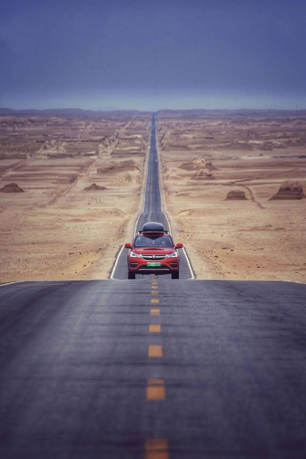 6月初自驾游从杭州去往西藏拉萨,再从拉萨到青海省格尔木。这是去往东台吉乃尔湖的315国道上,公路两旁是一望无际连绵不断的雅丹地貌。很久很久才能碰到一辆车,这里的道路笔直但是起伏很大,正好适用三分构图。