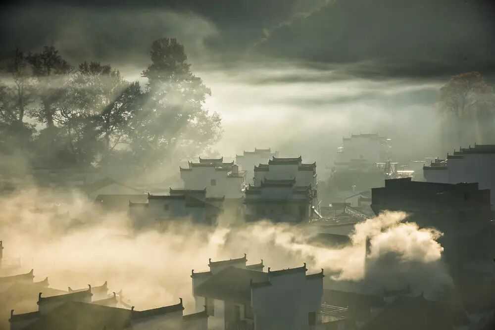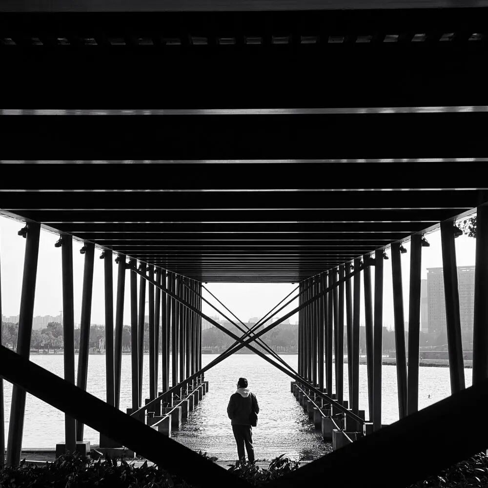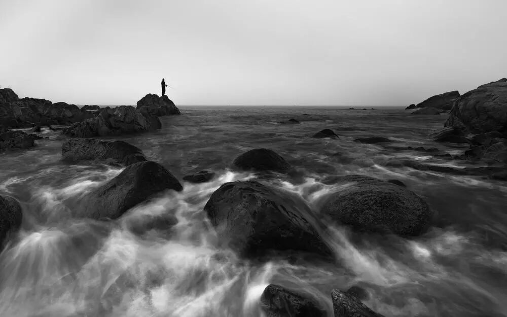 曝光方面,这个场景的光线也不错。光线射到雾上,氛围真出来了。后期转成黑白也是正确的选择。