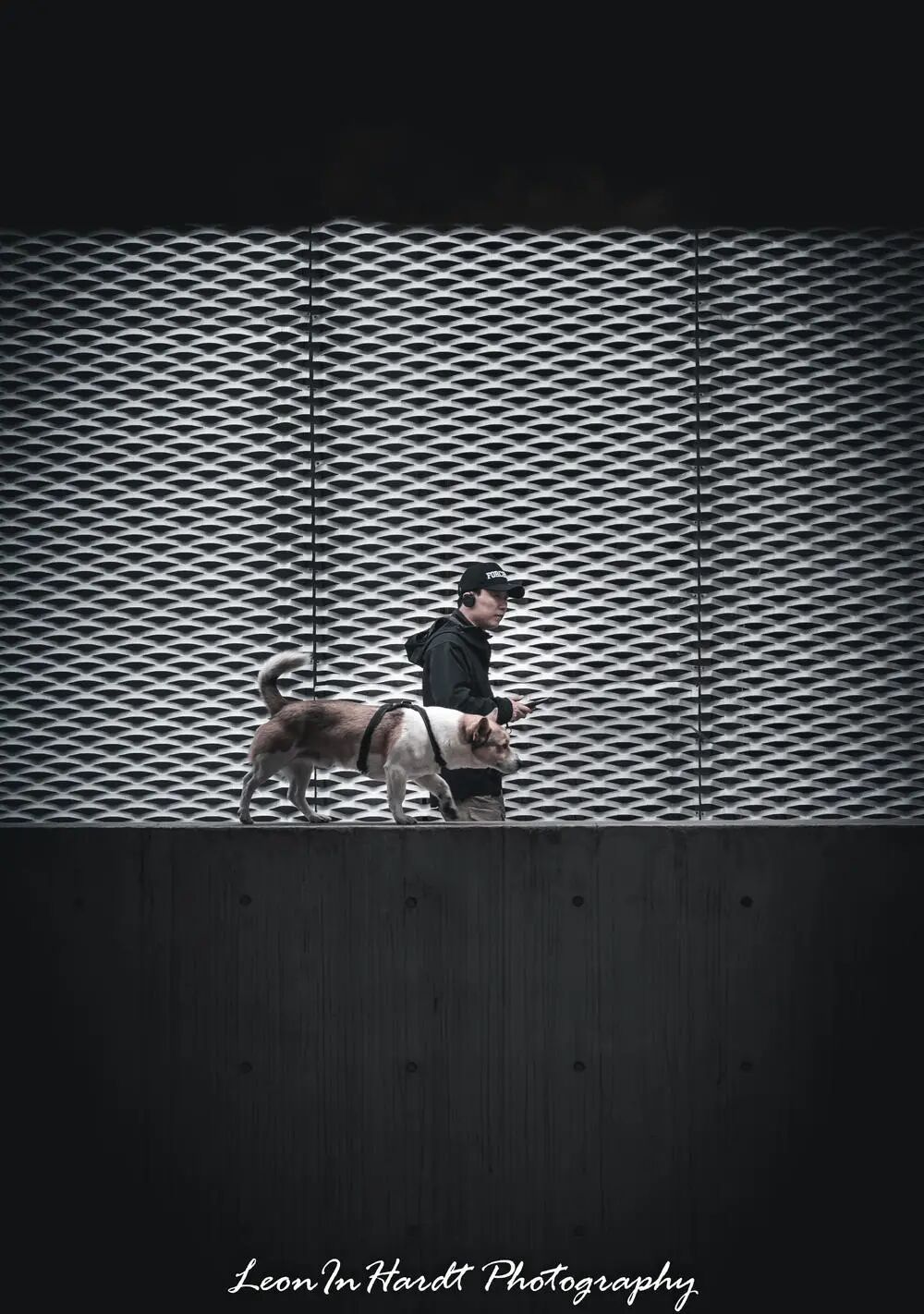 取景范围大了呢,我估计可能会有乱七八糟的东西进来。小了呢,小姐姐和小狗就都靠边了。现在来看,取景范围尚可。取景角度比较低,挺好。