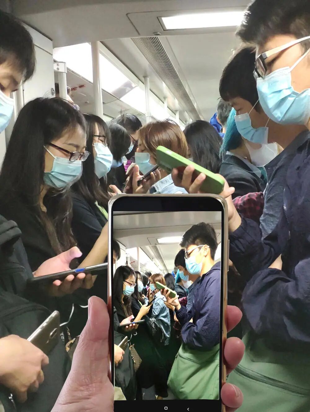 虽然是后期P的,但是我觉得你的想法挺好的。无聊的地铁时间,大家看手机。每个人可能都有不用的用法。捏着的可能在听歌。一只手刷的可能是在刷抖音,可能是在刷订阅号。横着一只手拿着可能是看视频。两只手的坐着的,有可能打游戏。