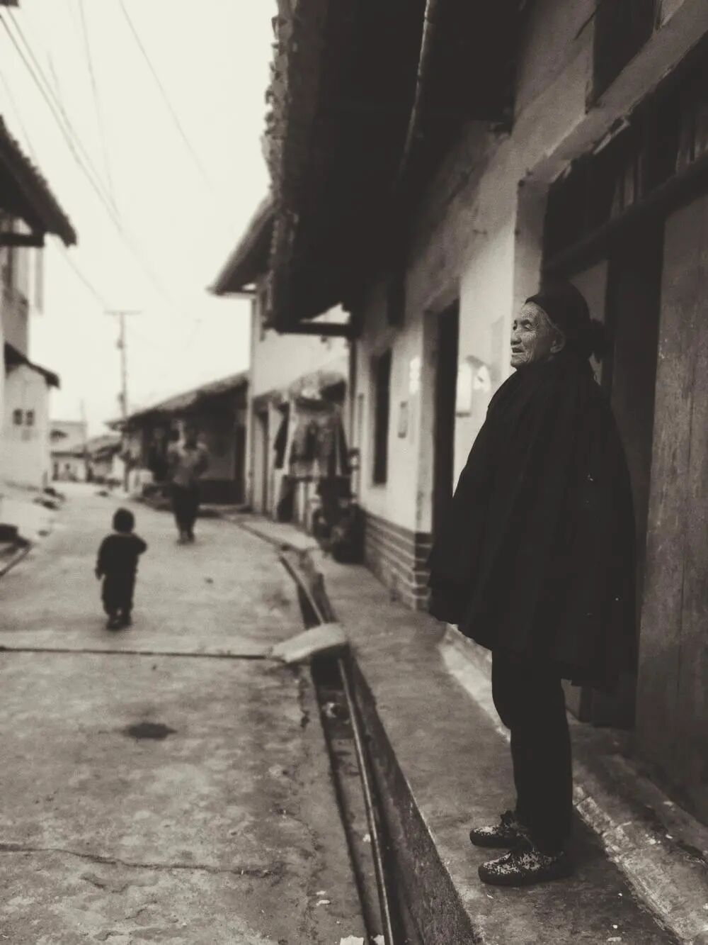 前几天下乡,在一条老街上,发现一位彝族老人,静静的站在门前望着远方,像是在回忆过去一家团圆时的欢喜日子,又像是在等着远方的亲人归家团聚。这时街上刚好路过一个小孩和中年人,小孩向远方走去,中年人从远方归家。觉得挺切题的,就用手机记录下了这一刻。后期不知道怎么调,干脆就调成了黑白。我觉得如果老人看向街上的小孩和中年人,可能会更好。但一直没等到这个时刻。望校长点评。不怕熊猫。