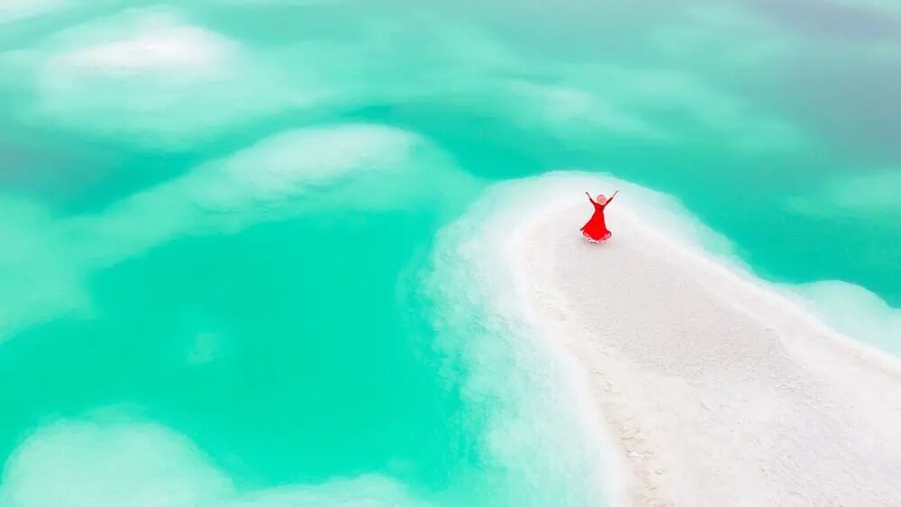 取景非常大气。场景很磅礴,一个人物也在比较好的位置上。红色的衣服和场景有点撞,这样很容易突出出来。其实我觉得撞色的时候,要么就是比例特别平衡,要么就是特别不平衡,都会有不错的效果。