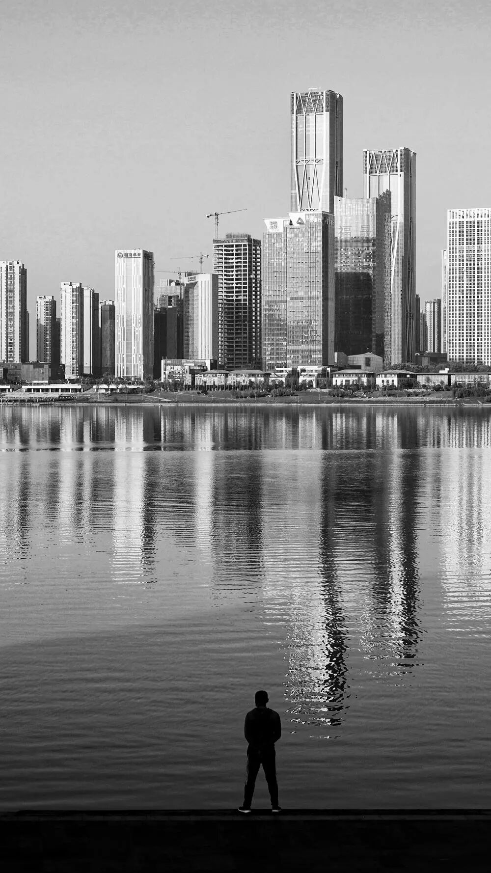 点评:一个人对着一个城市,人基本以剪影的形式出现。人物的姿态其实不是太好。有点像嘘嘘。