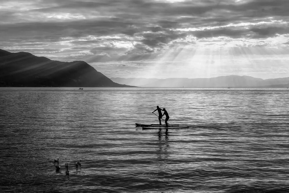 我不知道你多等一会会不会有更好的瞬间出现。比如你看左下角,一圈鱼好像转起来了。如果更加明显的一个圈。在画面中,会形成和船非常好的呼应。