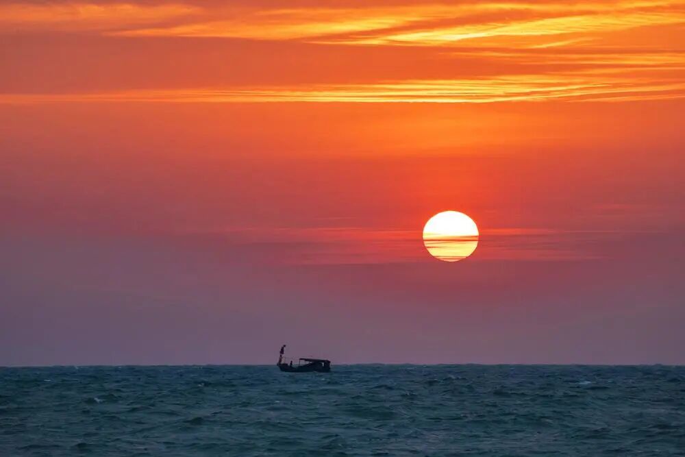 船和太阳的位置在画面中过于集中。船或者就居中,或者就和太阳分裂左右三分。都是可以的。