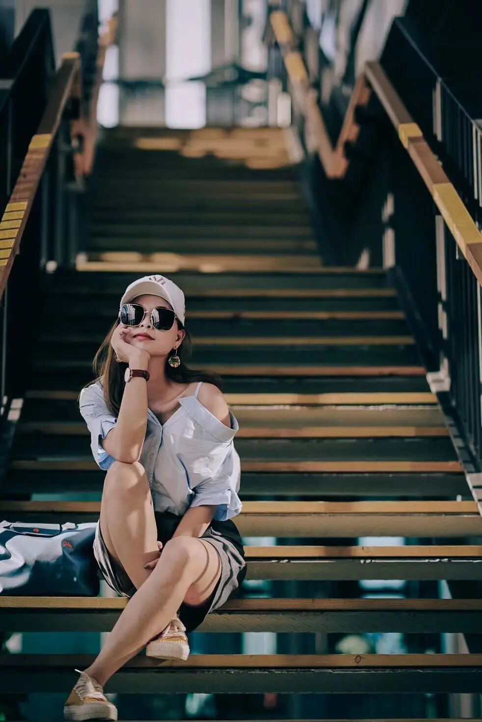 不知道是不是为了躲开墨镜的反光,你的拍摄角度我觉得有点高。这个就一下子显得和姑娘特别有距离感。同时这个角度拍过去,眼睛离帽檐太近了,本来墨镜就抓眼。你要好好考虑怎么突出眼睛。