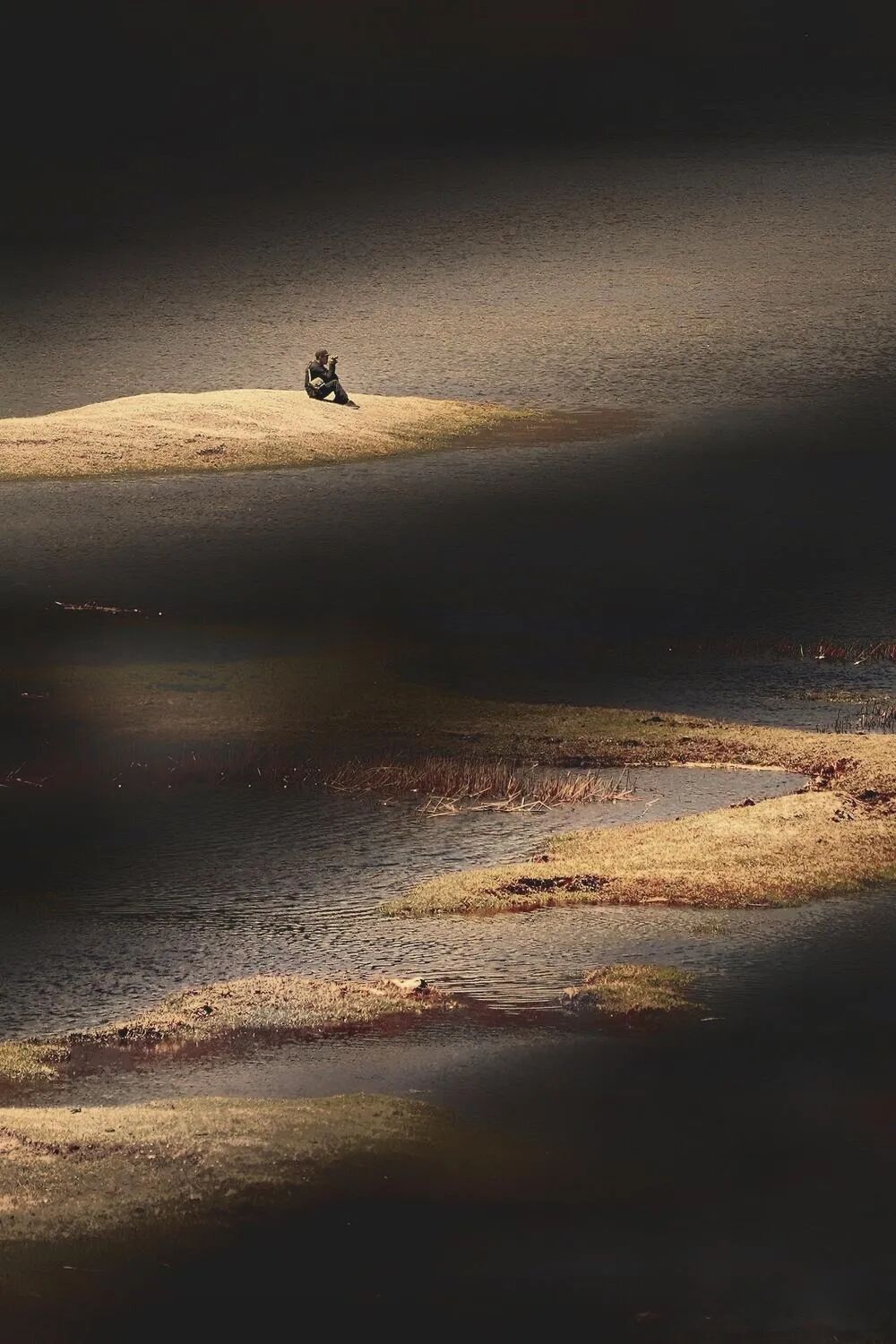 一束光打在人物身上,很好地突出了人物。同时营造出了明暗结合,这个比纯粹的暗,更好表现孤独。也更好表现享受孤独。