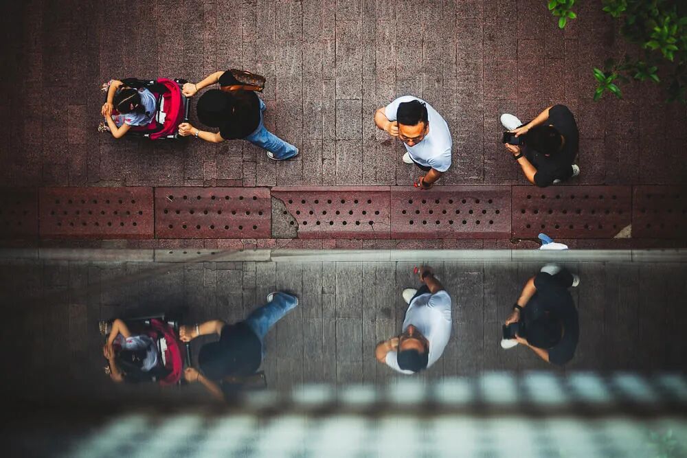 这张照片的独特视角可以说让照片有非常高的天花板。至于到底能得到多少分,就看画面中的人物如何表现。这张照片出彩就出彩在白衣男子。