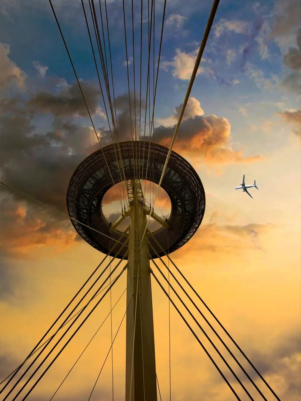 你要思考一下用什么焦距拍摄这个建筑,那么就要用什么焦距的效果去做这个飞机。