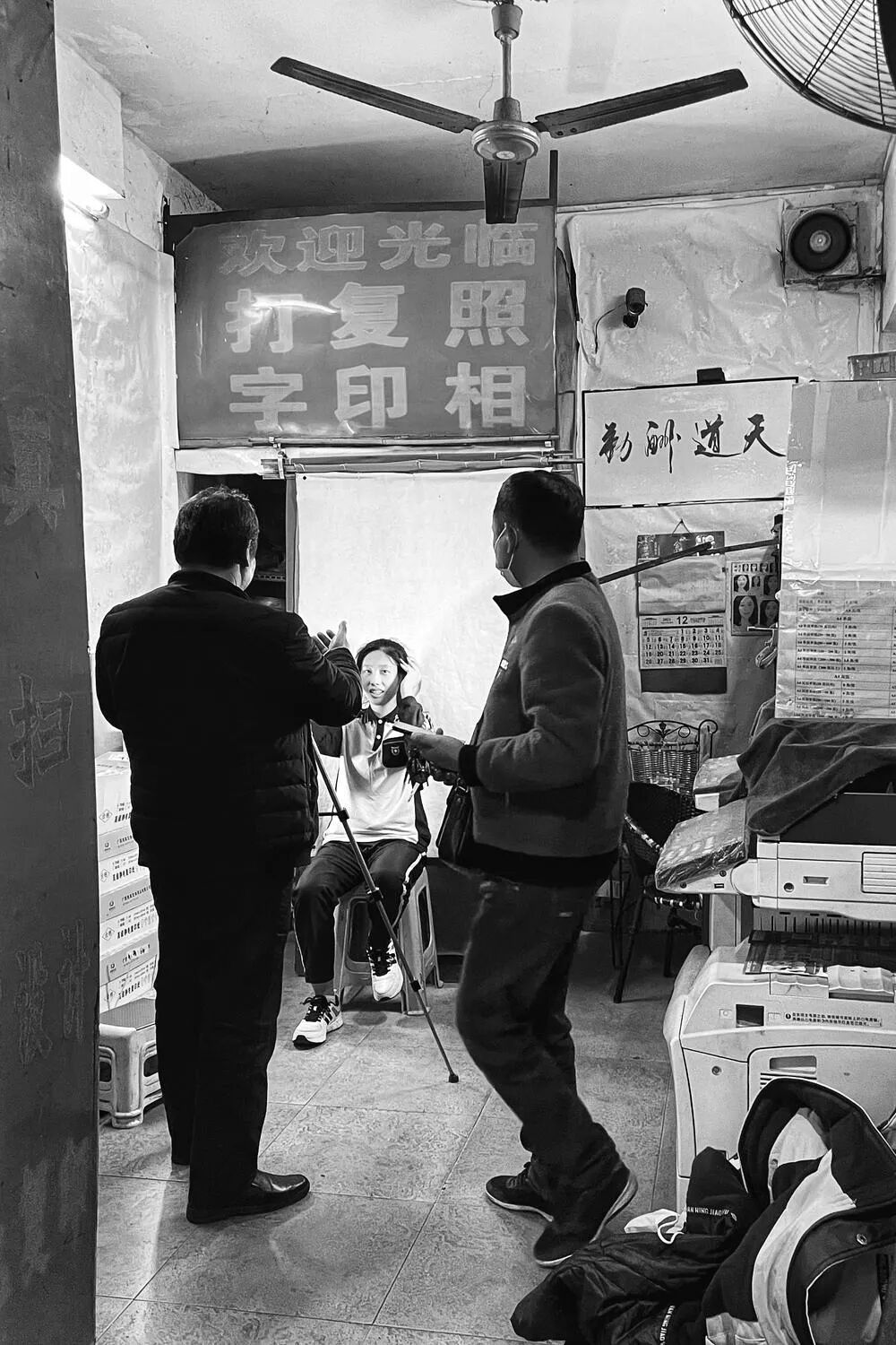 《证件照》路过一家文印小店,一位父亲带女儿来拍证件照,女孩有点害羞,我抓拍了这一幕。