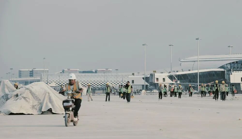 点评:我觉得以一群工人作为主体,背景是卫星厅,是一个挺好的想法。尤其是五一劳动节。