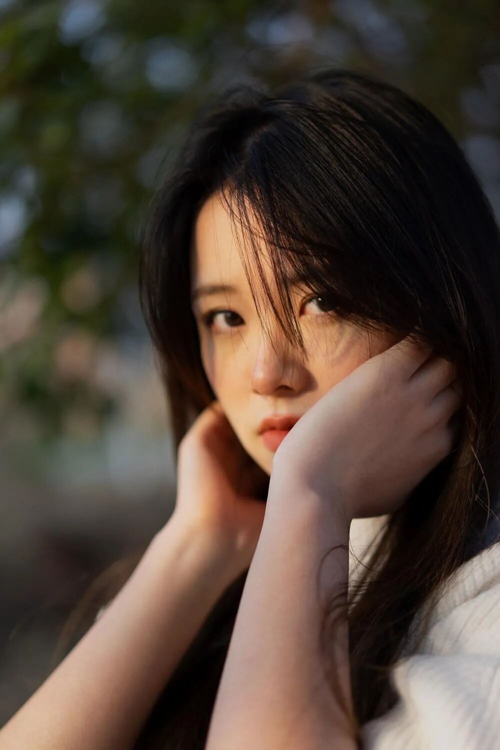 我觉得姑娘的这个托腮的姿态不太好,其实对于脸型的修正可以靠头发,要自然得多。