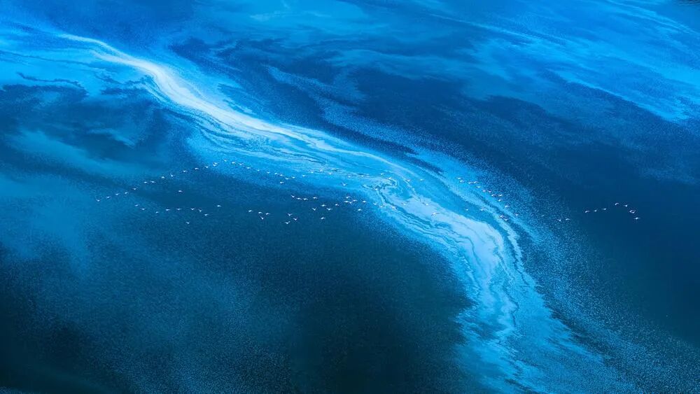 点评:漂亮的航拍。我其实更被地面上的线条吸引了。飞翔的鸟类没有更明显一些。