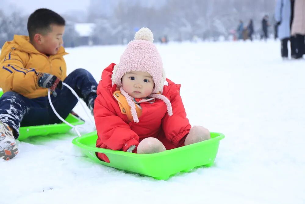 一定是你拍摄主体有什么感染人的地方。现在我就真的看到就是小朋友呆呆地坐在雪车上面,毫无状态可言。