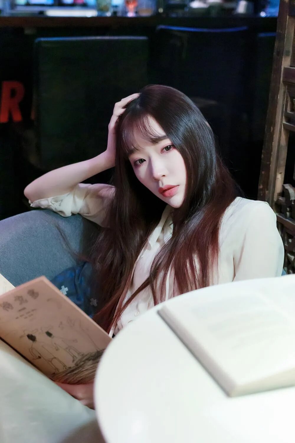 在咖啡厅拍的一个小姐姐整体环境偏暗,桌上的台灯作为光源打亮脸部