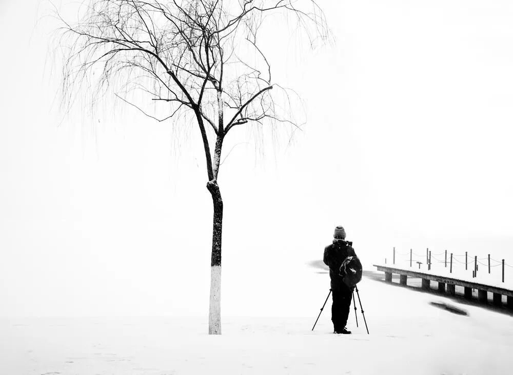 点评:这张照片我觉得还是不错的。一个人在颐和园拍摄雪景。一棵树一个栈桥作为画面其它元素,很干净,很简洁。