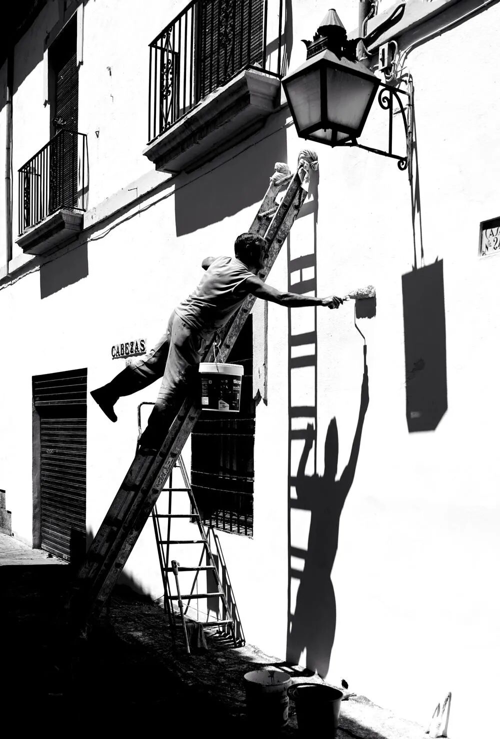 《油漆工》2019年西班牙建筑之旅我自己拍的最喜欢的一张片子瞬间抓拍,光影及人物动作都很到位