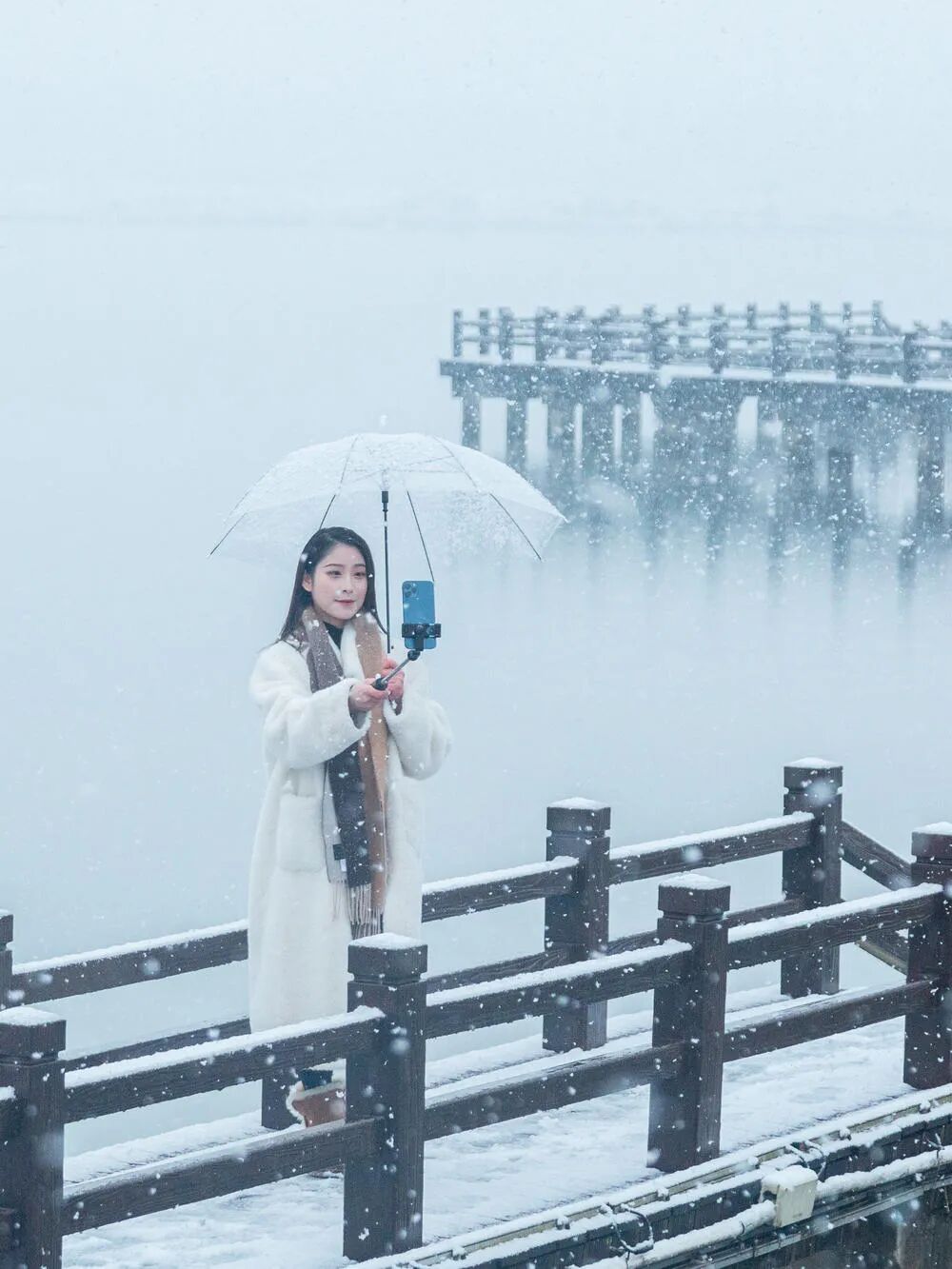 春雪直播人。2月22日,这个有爱的日子里大雪爱长沙。湖畔美女正在直播,想突出小姐姐风雪中的表情姿态,后期提亮雪景,有裁剪