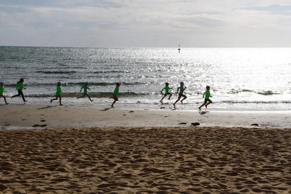 黑白和原图对比一下。看看大家喜欢哪张?看看老师什么意见。墨尔本彩虹屋海滩,训练冲浪的孩子们跑步热身,逆光抓拍了一队,这个是裁剪后做了黑白。