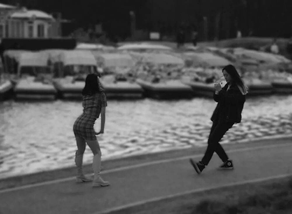 点评:这算是不错的抓拍瞬间了。但是也暴露出几个问题。首先比较严重的就是曝光的问题。俩姑娘拍得跟碳一样黑。这个不管从什么角度来说都是不应该的。所以让大家平时把描述写详细一点,就是说说自己拍摄的时候怎么想的。比如对于你来说,可能你拍摄的时候考虑压曝光,可以把远处的人压暗。但是其实利用虚化已经可以很好简化画面了。