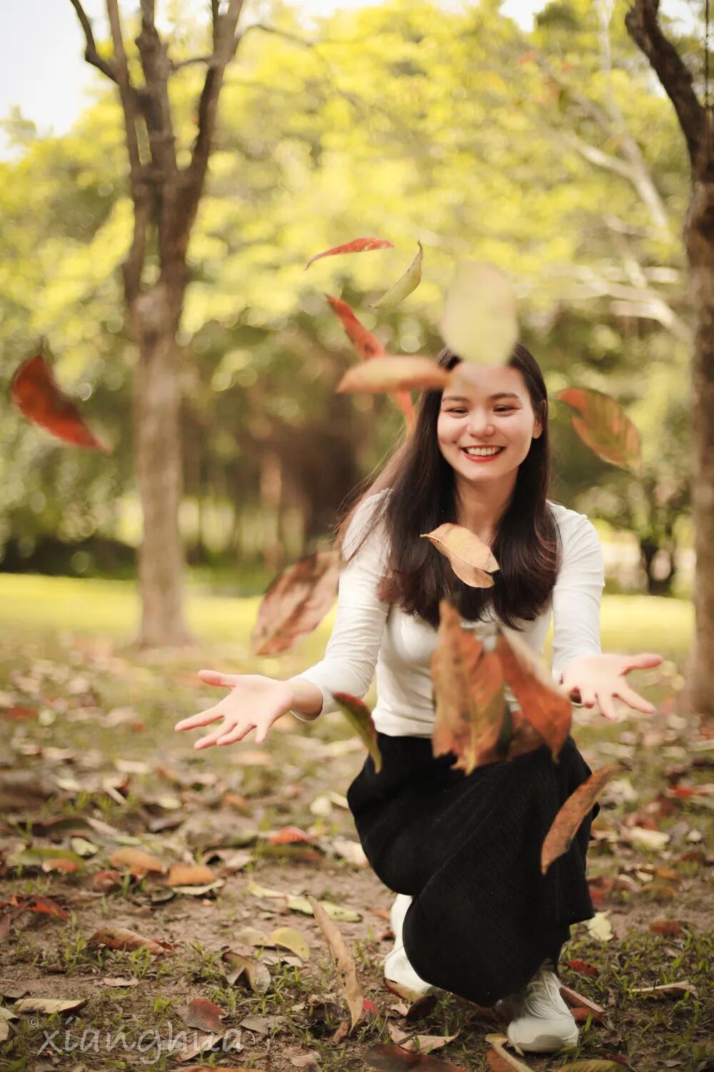 瞬间好的一方面是抓住了好的笑容,另一方面就是叶子腾空的位置非常棒。