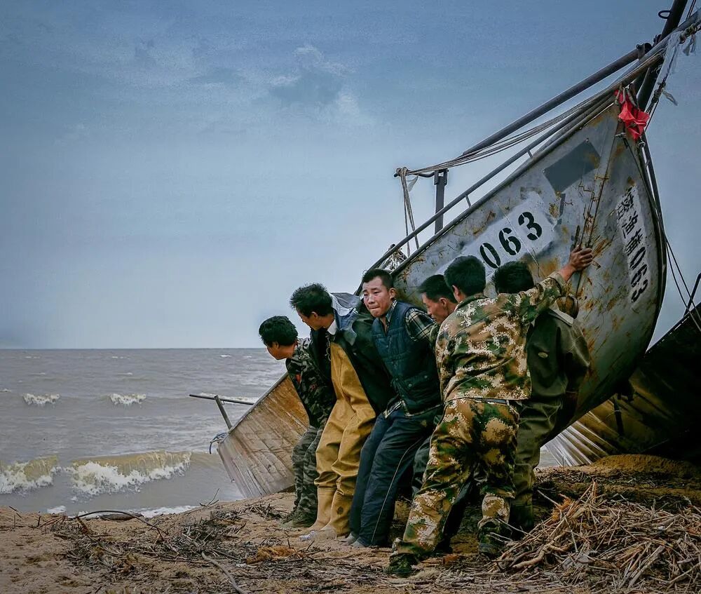点评:看着就是拖船上岸或者推船下海。所以环境交代我觉得也不需要多做什么。人物状态呢,稍微“缓”了点,没在几个人发力的时候拍摄,算是一个不小的遗憾。但是这个拍摄题材,还是非常好的。取景范围其实合适,瞬间也凑合。就是拍摄角度,你可以往左边走走,有利于画面张人物的展开。