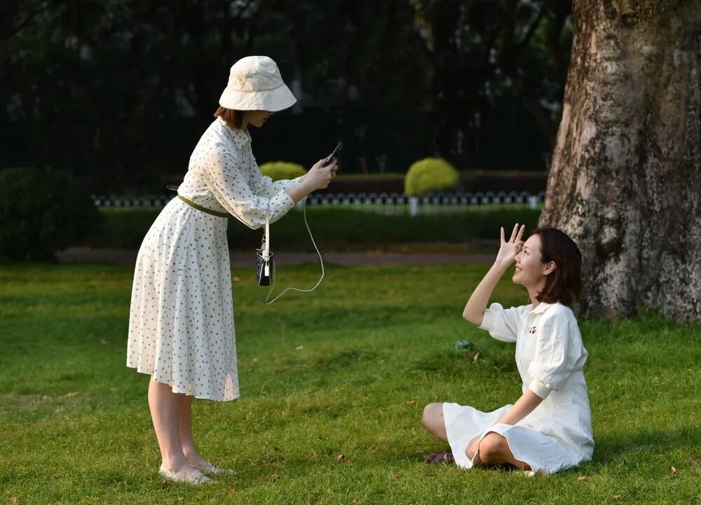 《小姐妹》,草坪上,几个小姐妹在落日余晖中玩的很开心。我锁定了其中一个短头发的白裙小姐姐,她的表情、动作俏皮,当她坐草地上摆出可爱的pose,她的同伴身体前倾给她拍照,我快速连拍了这个有喜感的瞬间。校长上次点评了另一张三人的《小姐妹》,期待校长和大家点评这张。