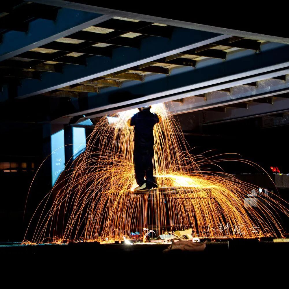 学校旁边工地的电焊工人,晚上看这挺漂亮的,弄了个长曝光