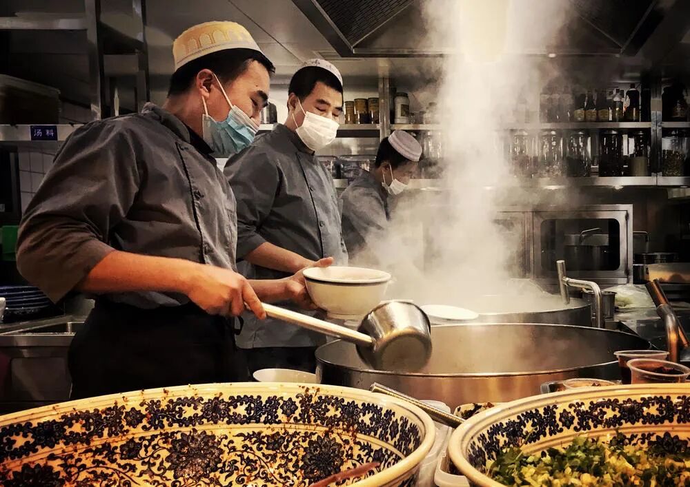 兰州拉面,取面的时候热气腾腾,原片偏冷,后期加暖色调突出温暖氛围