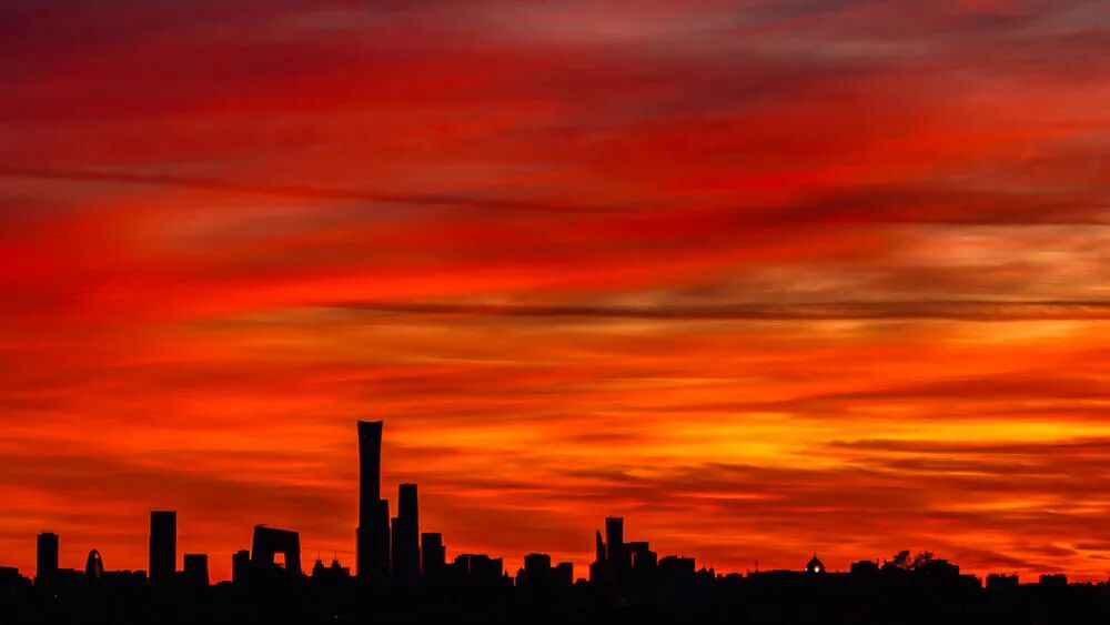 清晨遇见北京难得的火烧云,想要广阔的感觉,以火烧云为主,同时建筑当时也偏暗,就全黑做成剪影,并尽量将地面压低,没有严格遵守三分线。后来有老师看到建议我也可以调成竖构图,试了一下是另一种感觉,也很喜欢。就把两张都放上来了,大家觉得更喜欢哪张呢