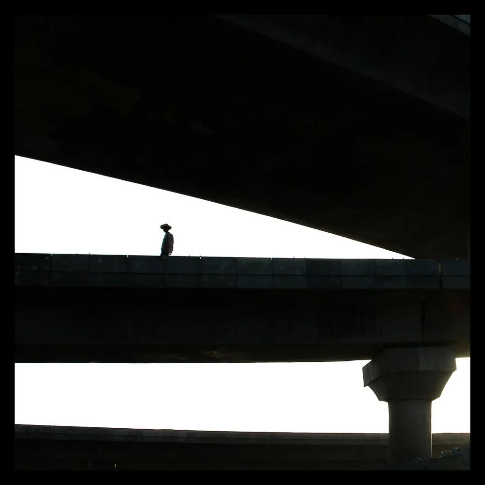 深圳湾大桥的建设者们(六)巡查傍晚时分,一名工人到大桥上巡查。