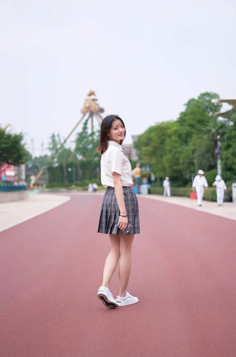跟小姐姐去恐龙园玩拍的,我自己说的话觉得上半身白衬衫有点过曝,然后背景单薄了一些,希望老师看看还有什么问题需要改进的
