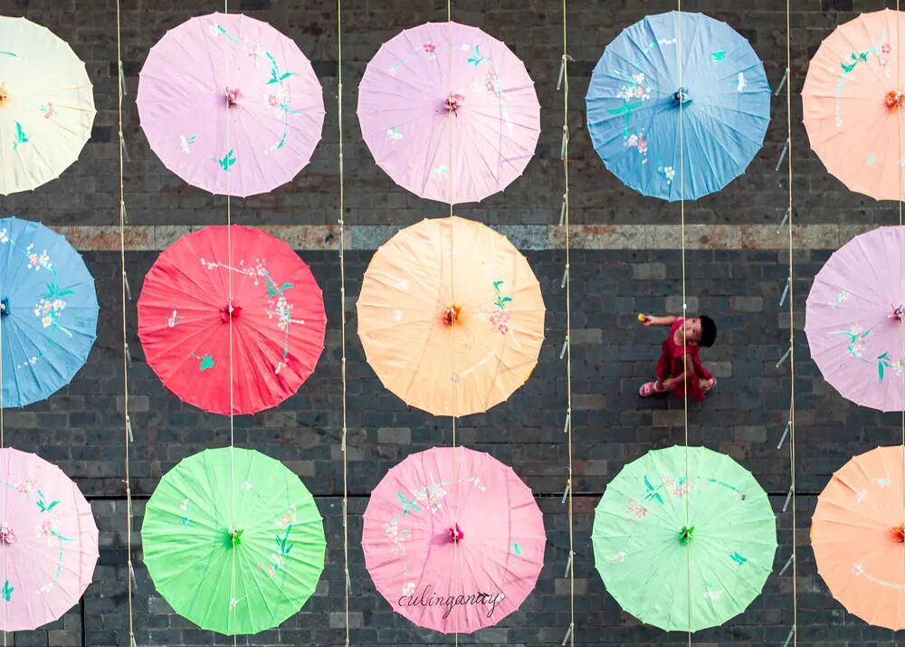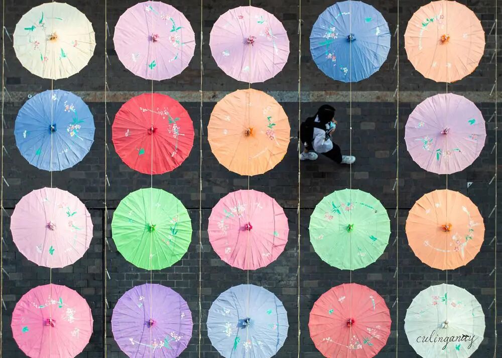 再比如,如果下面也有个人打伞,伞和这些伞明显不同,就会显得很突出。