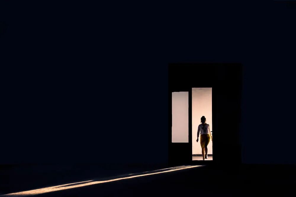 小姐姐与她的影子。最近很喜欢找这样的场景拍这样的片子。但这张片子其实没拍好,主要问题是地上的投影不完整。一是门框太小、太阳太斜,二是时机不是太好。但感觉小姐姐的姿态还是不错的。至于周围墙壁,后期拉黑了,但还是保留了细节。尝试过如果不拉黑,感觉不能达到我希望表达的效果。