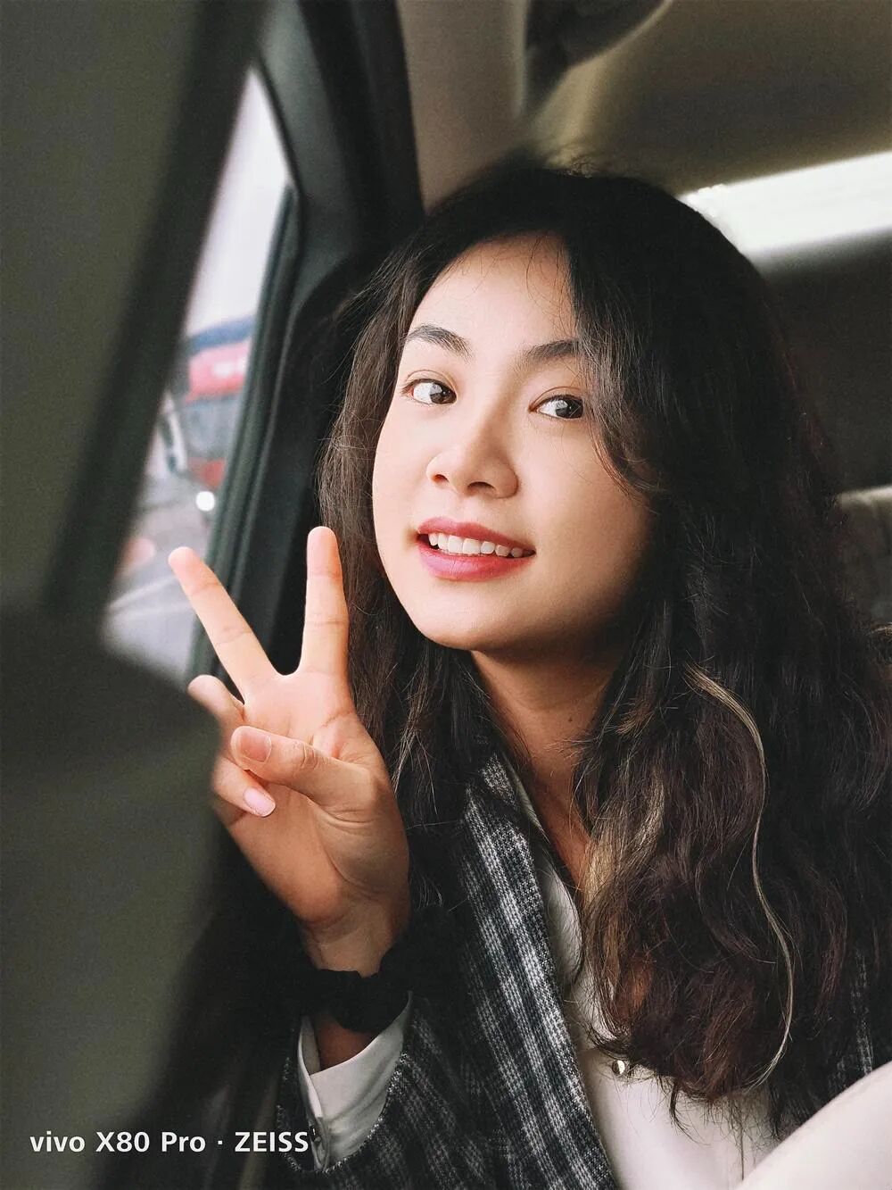 小姐姐表现非常好,长得也好。窗口进来的光线很舒服。vivo手机拍摄人像选择好。就是拍摄场景太随意了。车里也就算了,窗外的风景还不好。