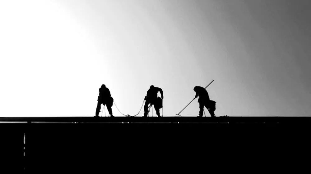 工人在刷玻璃幕墙的最上端,属于水平和竖直交界的位置,工人在调整装备,做最后的准备,处于逆光,手机拍的,下面的玻璃幕墙细节都没了,所幸工人动作状态不错,后面从新对图片进行的裁切。