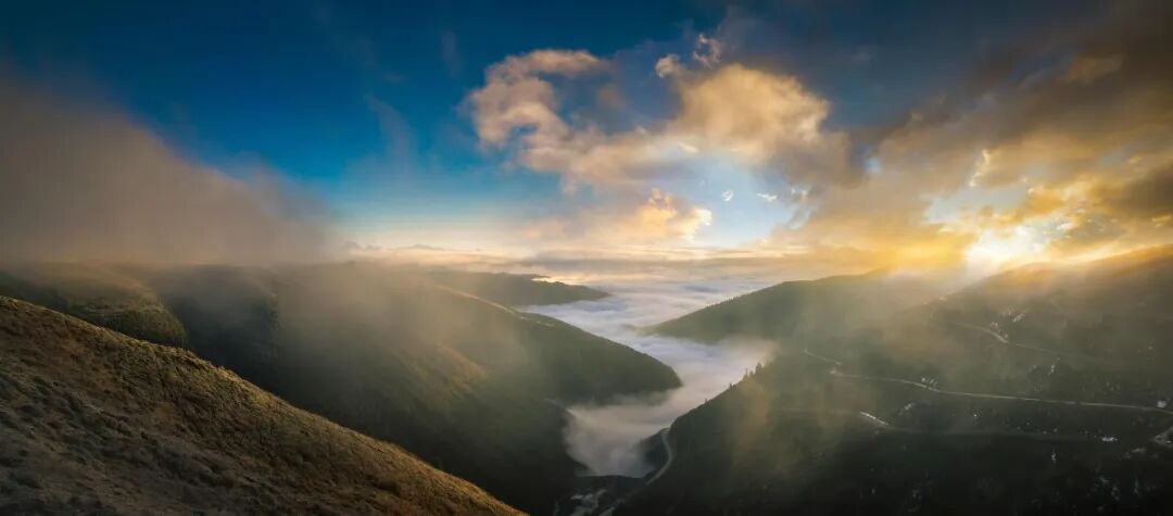 比如这个画面,就要考虑强调这一条雾气昭昭的山谷。但是现在近处一座山,又比较亮,就显得有些夺眼了。