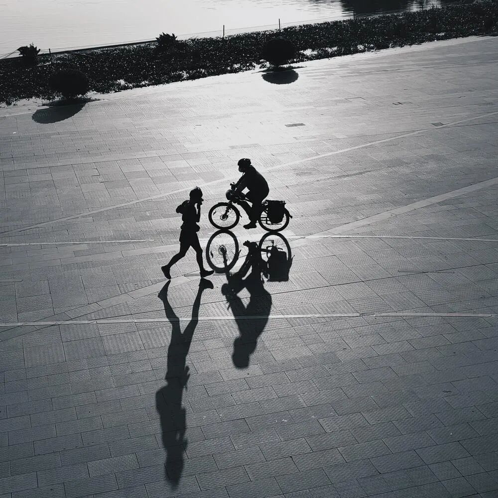 光影中的人个人思路,高处打卡,跑步的人与骑自行车的人比较接近了,这个时候的抓拍,就有点意思了,这是不是平行宇宙中,不同轨迹的碰撞不同人生的交错,是不是吹大发了华为手机打卡,逆光拍摄,就是大幅度降曝光