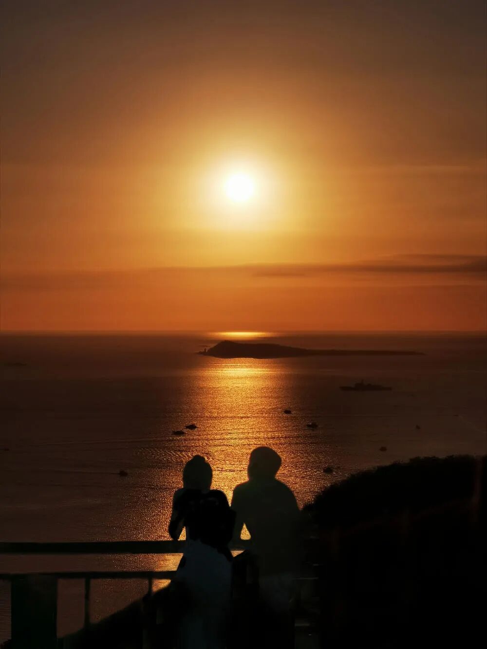 陪你一起看夕阳山顶上拍下了这对小情侣夕阳下的背影……